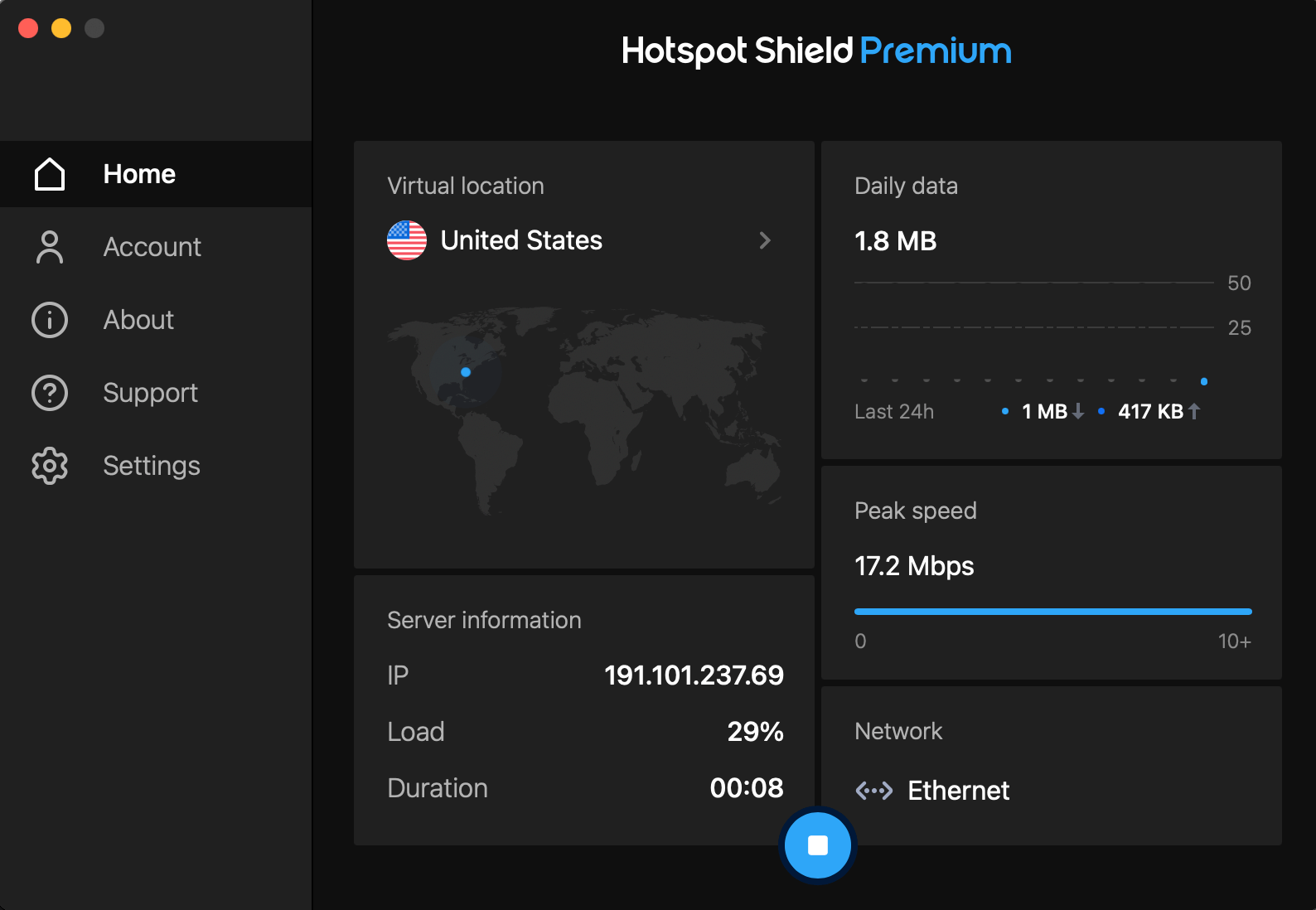 We hardly noticed we were connected to Hotspot Shield because the speeds barely changed. It runs on Hotspot Shield’s Hydra protocol to reduce disruption, while keeping your data secure.